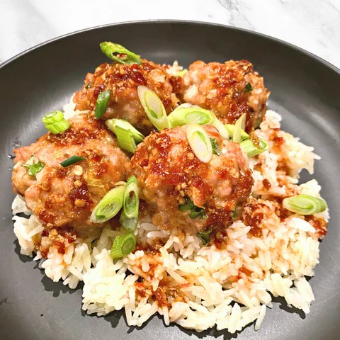 Spicy Asian Chicken & Pork Meatballs with Jasmine Rice